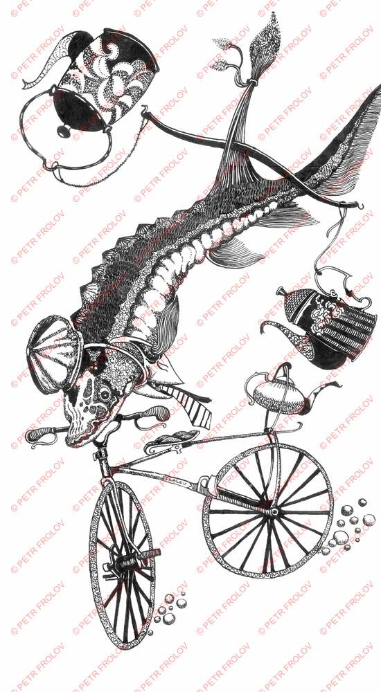 Осетр-рассыльный за чаем. Фрагмент камина «Атлантида».